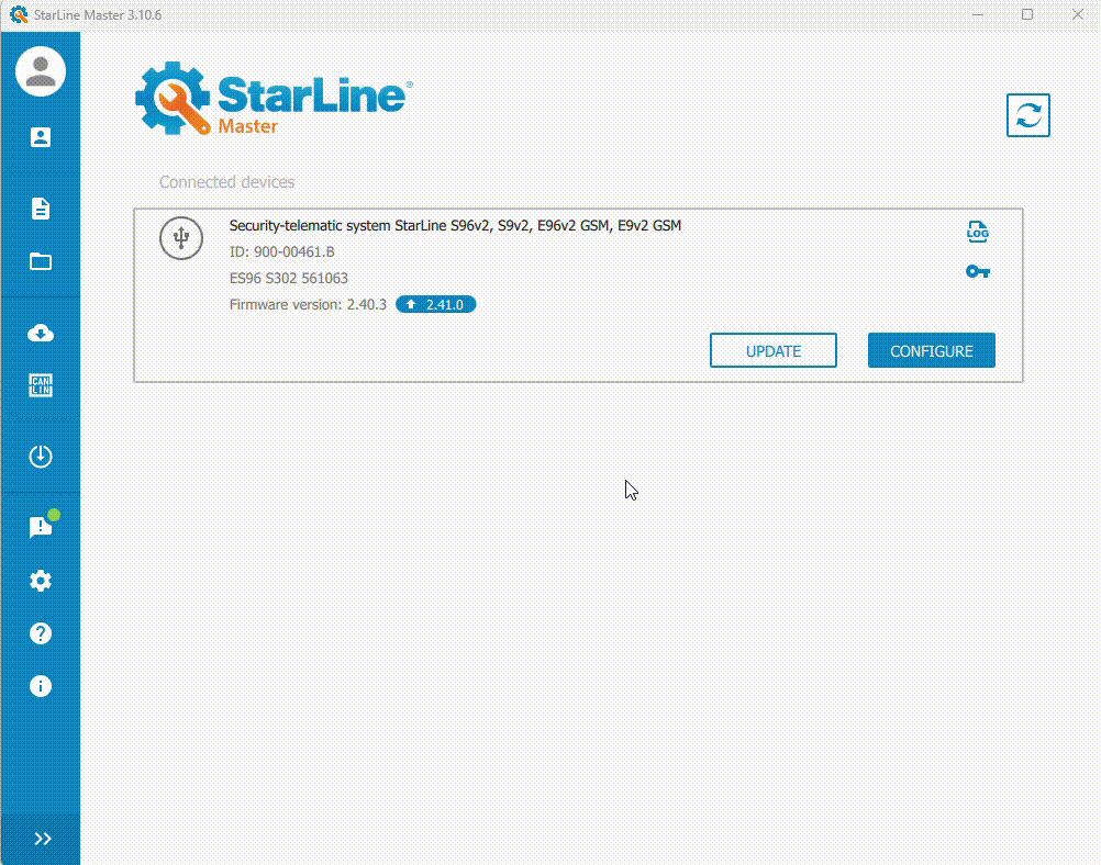 2. Launch the "StarLine Master" app and make sure the connected device is detected.